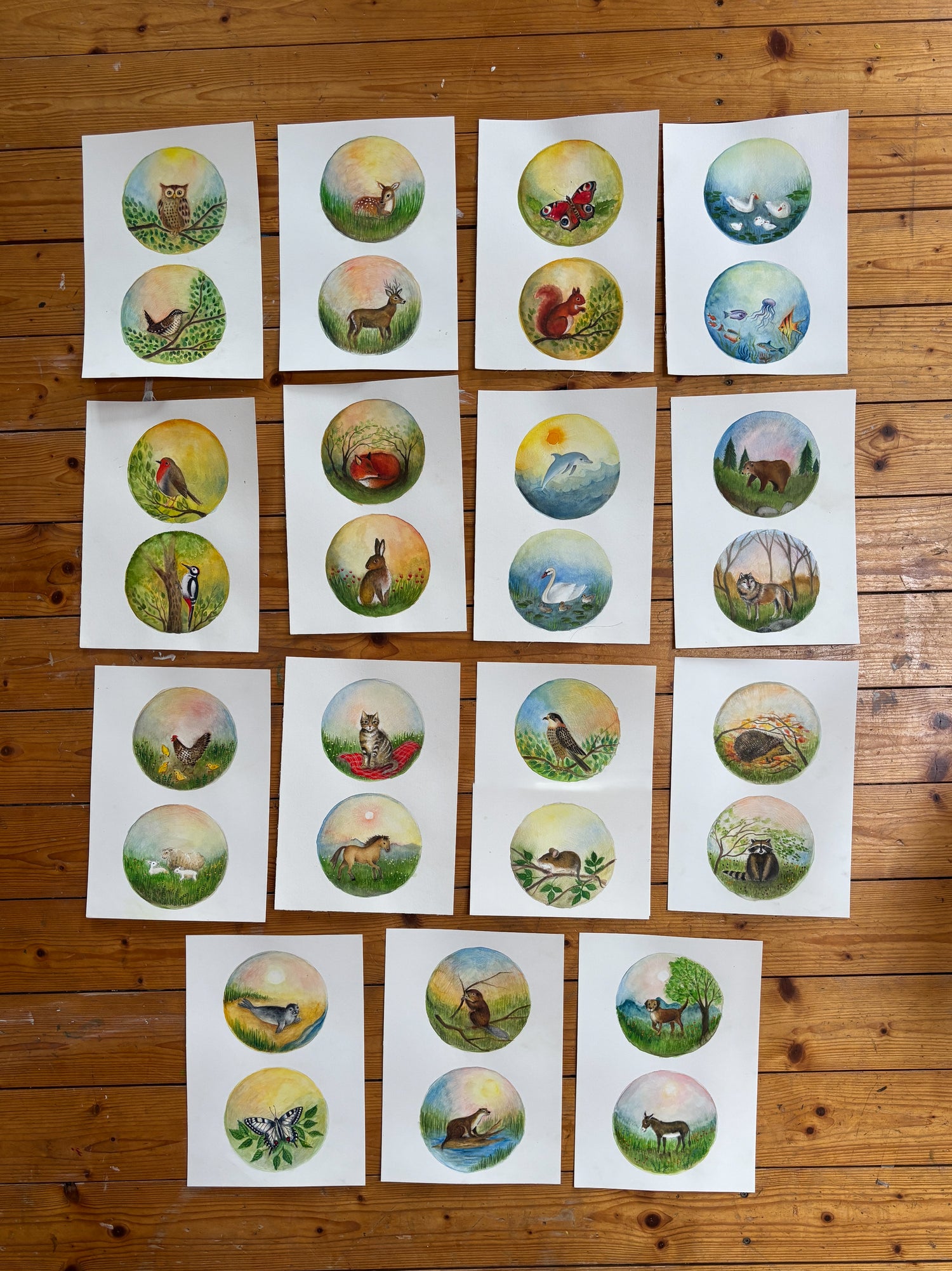 Kunstkarten Set Tiere groß (4 Postkarten A5)