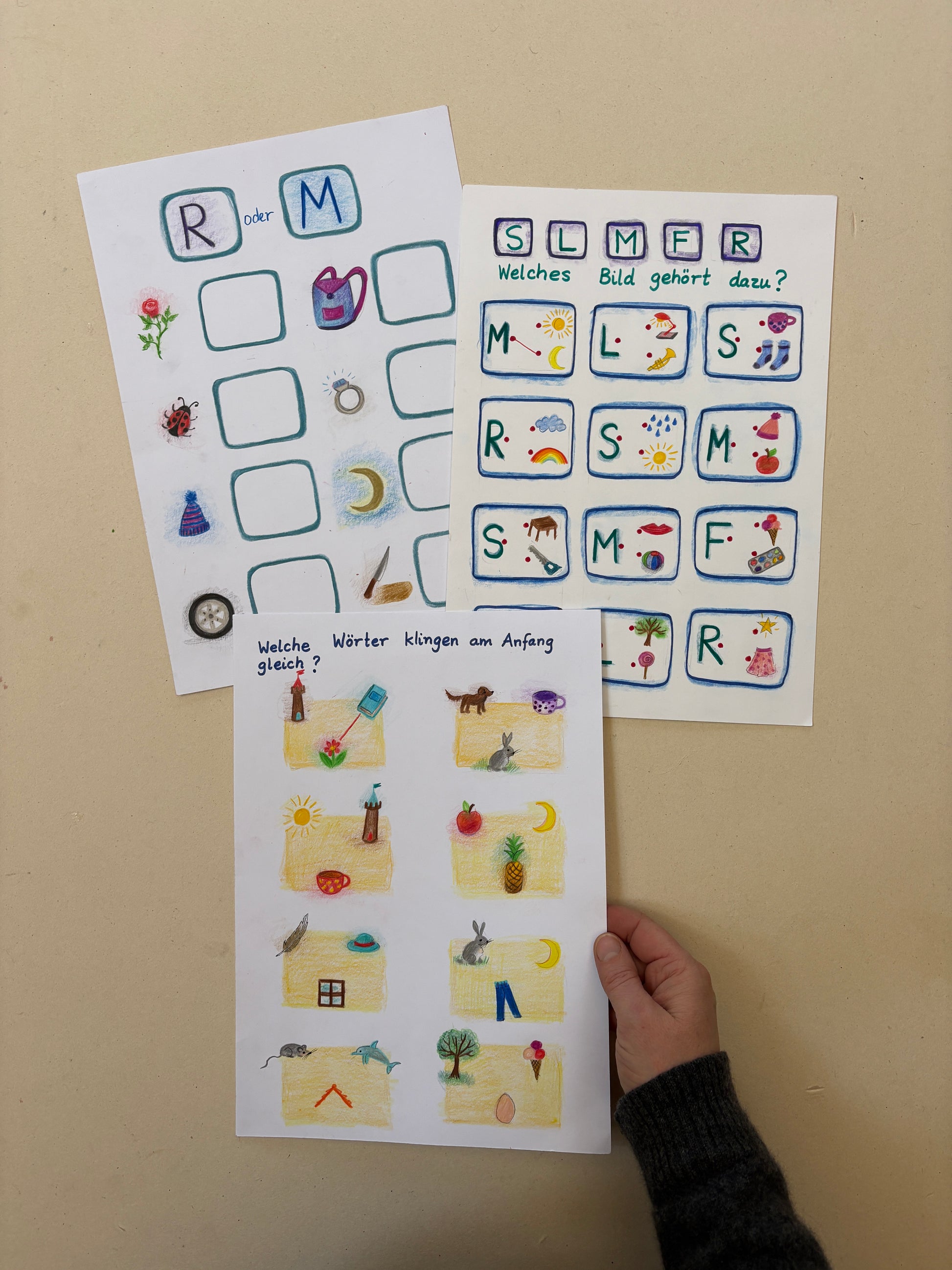 Buchstaben und Sprache 1, 3 Arbeitsblätter (PDF)